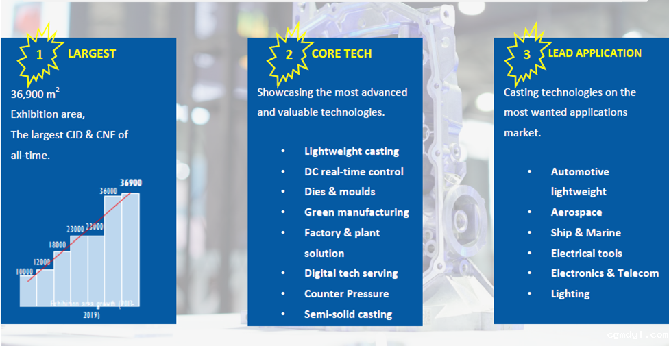1. 36,900 sqm in 3 halls of SNIEC (Hall N1-N3) breaks the new record of the exhibition area of CHINA DIECASTING and CHINA NONFERROUS