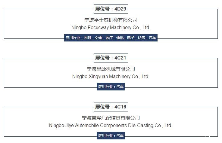 7 月19 - 21日,上海新国际博览中心W4-W5馆,CHINA DIECASTING 2017 第十二届中国国际压铸会议暨展览会。现场将有应用于汽车、电子、机械、医疗、通讯等诸多领域的更轻、更薄、更优质的压铸件展出,与参展企业现场洽谈您的采购需求,把宝贵时间花在最有价值的平台,亲临现场将压铸件一次看个够!