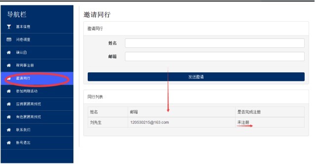首先,自己要先注册成功,在后台菜单点击进入邀请同行。