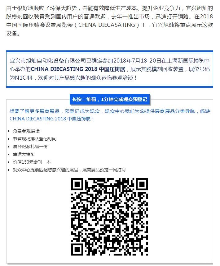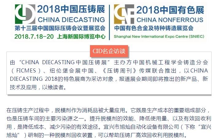 【节能环保】宜兴旭灿:脱模剂回收装置提供商 CHINA DIECASTING 2018