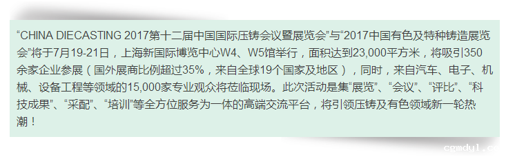 CHINA NONFERROUS 2017将于2017年7月19—21日在上海新国际博览中心举行,展出面积将达到23,000平方米,预计350余家国内外展商参展,国际浸渗设备、浸渗液、设备改造和浸渗加工专业生产商——Ultraseal International的子公司——宝密浸渗机械(上海)有限公司就是本届有色铸造展商中的一员。