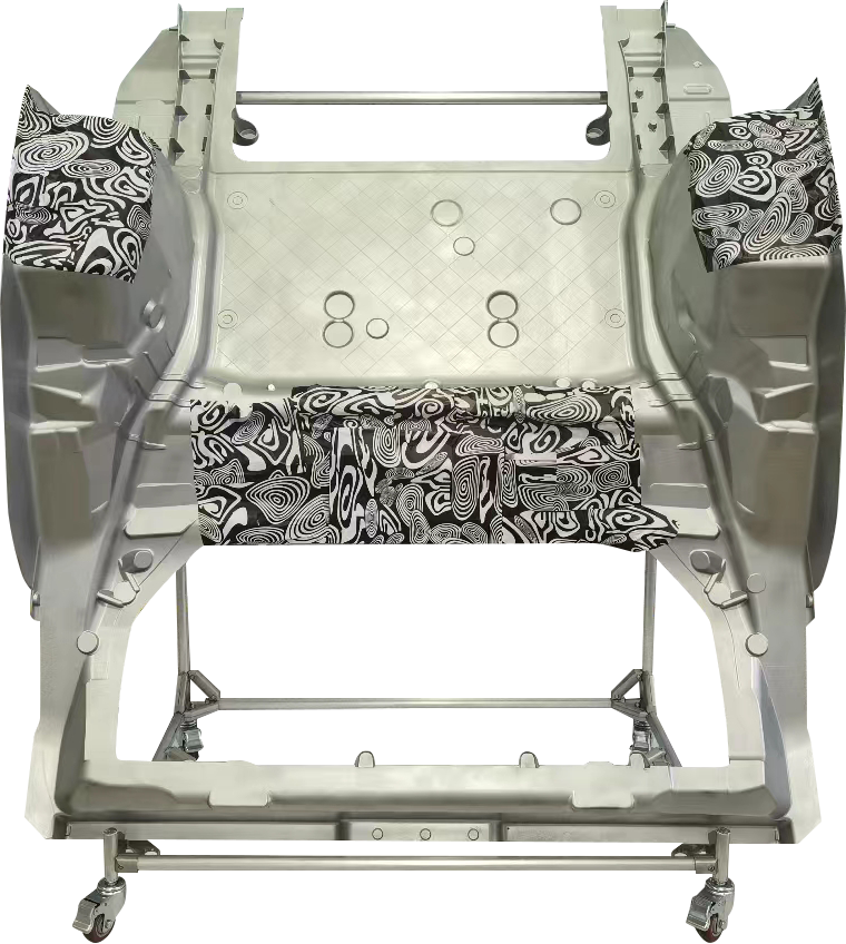 产品生产关键要求: 1、产品需具备高强度、高塑性、可连接性;2、产品内部质量要求高,内部质量关键区域 2 级,一般区域 3 级;3、产品尺寸精度要求高,匹配特征面及切边公差要求±0.5mm、未注公差要求±0.7mm;定位孔及安装孔形位公差要求±0.3mm、安装过孔及线束相关孔形位公差要求±0.5mm。
